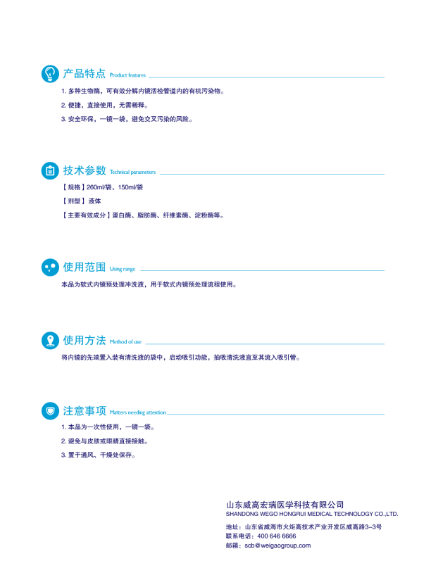 1、多種生物酶,可有效分解內(nèi)鏡活檢管道內(nèi)的有機(jī)污染物。2、便捷,直接使用,無需稀釋。3、安全環(huán)保,一鏡一袋,避免交叉污染的風(fēng)險(xiǎn)。