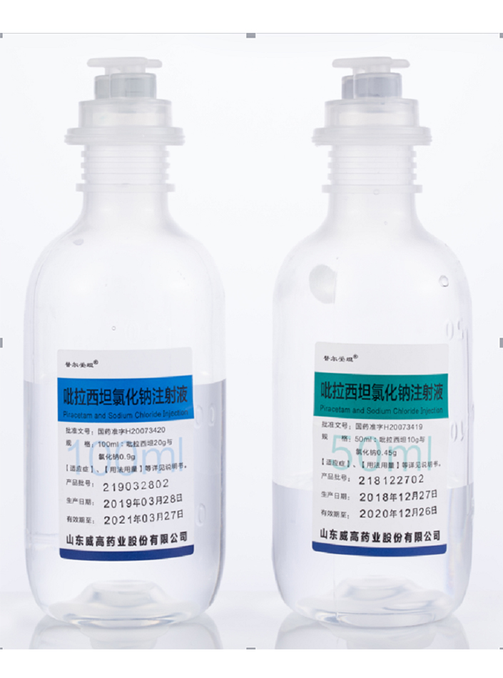 【規(guī) 格】50ml:吡拉西坦10g與氯化鈉0.45g;100ml:吡拉西坦20g與氯化鈉0.9g。